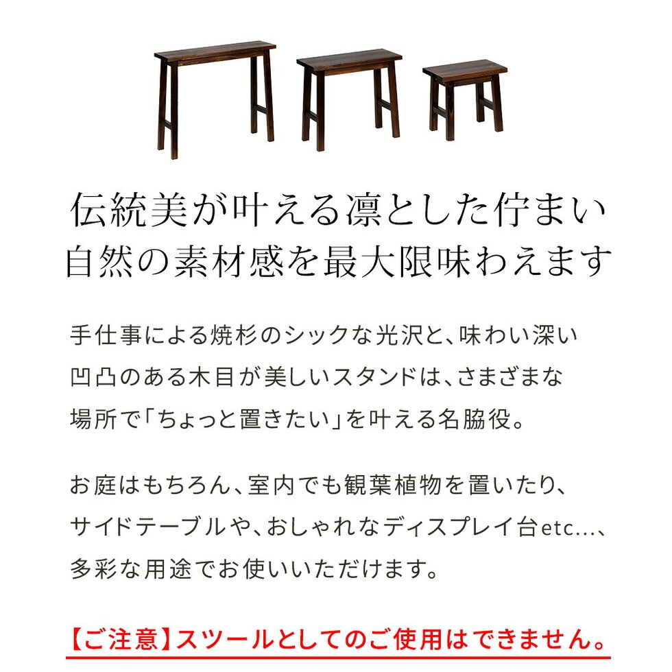 | ■商品名 | 焼杉スツール風スタンド 3点セット |