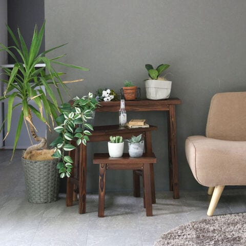 住まいスタイル 焼杉スツール風スタンド 3点セット YT-406080Y<br>コンソールテーブル サイドテーブル テーブル ラック スタンド プランター 花台 台 木製 ウッド おしゃれ 玄関 室内 リビング ガーデン インテリア