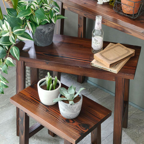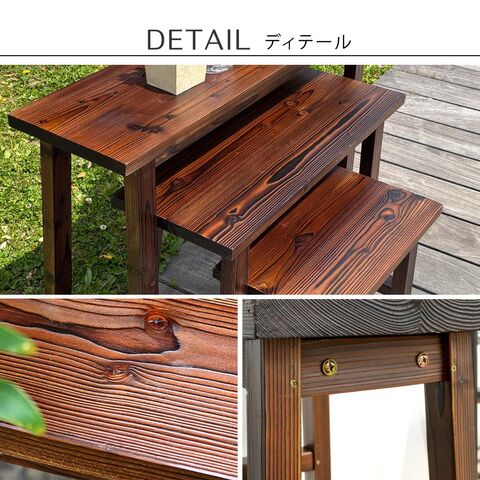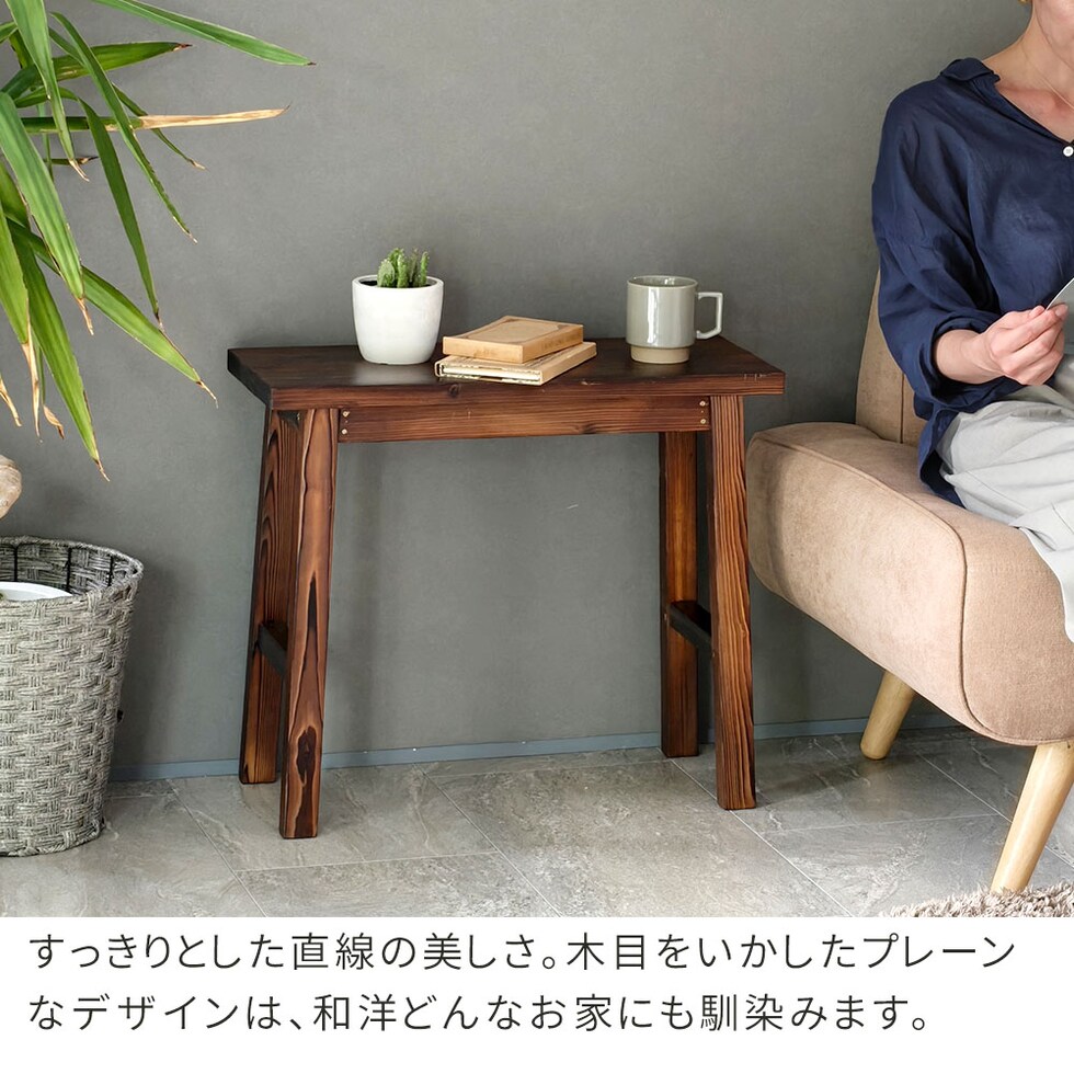 住まいスタイル 焼杉スツール風スタンド 中サイズ YT-6052Y<br>幅60 コンソールテーブル サイドテーブル テーブル ラック スタンド プランター 花台 台 木製 ウッド おしゃれ 玄関 室内 リビング ガーデン インテリア