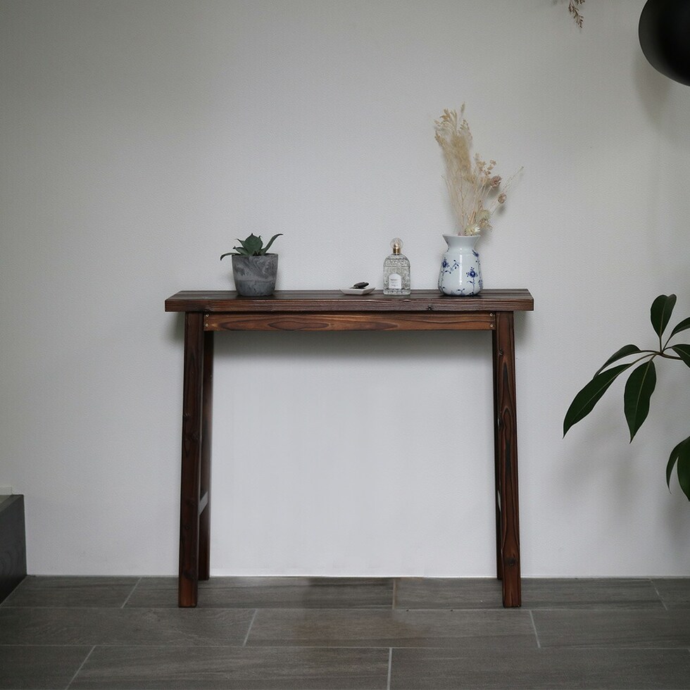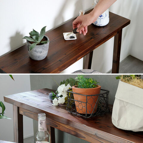 住まいスタイル 焼杉スツール風スタンド 大サイズ YT-8068Y<br>幅80 コンソールテーブル サイドテーブル テーブル ラック スタンド プランター 花台 台 木製 ウッド おしゃれ 玄関 室内 リビング ガーデン インテリア