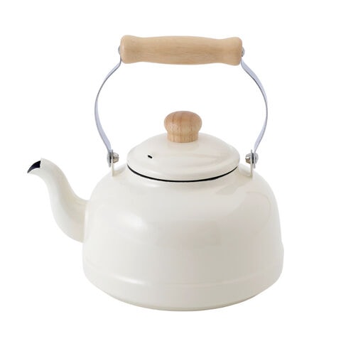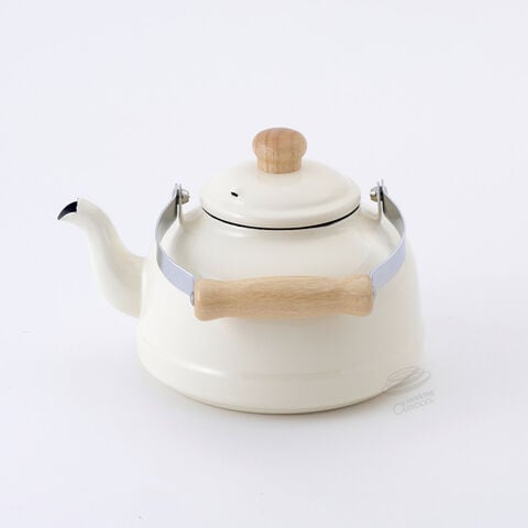 レトロな雰囲気で温かみのある木製ハンドルの琺瑯ケトル