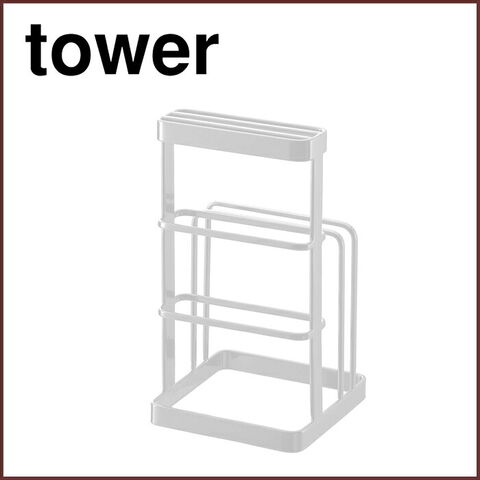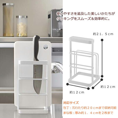 タワー カッティングボード&ナイフスタンド 山崎実業 ホワイト 6775 yamazaki tower【包丁立て 包丁入れ 包丁差し スタンド 包丁 まな板立て キッチン収納 整理 タワーシリーズ】