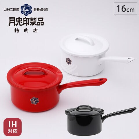 月兎印 ホーロー ソースパン 16cm 1.7L IH対応 野田琺瑯【IH 200V ゲット 片手鍋 ホーロー鍋 琺瑯鍋 ほうろう レトロ 蓋付き フタ付き 日本製】 レッド