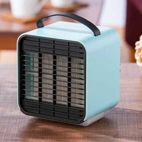 どこにでも置ける静音設計のコンパクトな卓上冷風扇。