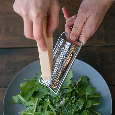 商品説明丸型のチーズ専用のおろし器です。コンパクトサイズなのでピザやグラタンのトッピングや、卓上でパスタにチーズをふりかける際に便利です。オールステンレス製で清潔に保てます。