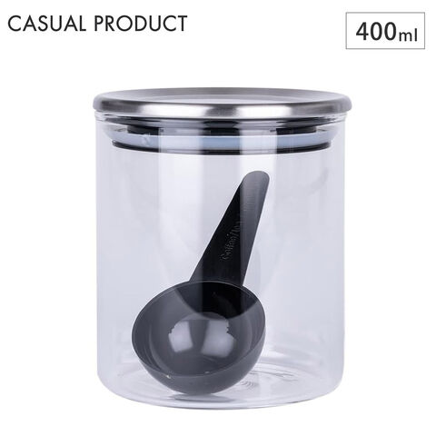 CASUAL PRODUCT スタンダード ガラスキャニスター 400ml ウッドリッド/ステンレスリッド 計量スプーン付き【耐熱ガラス コーヒー 茶葉 保存容器 調味料入れ キャニスター カジュアルプロダクト 青芳製作所】 ステンレスリッド