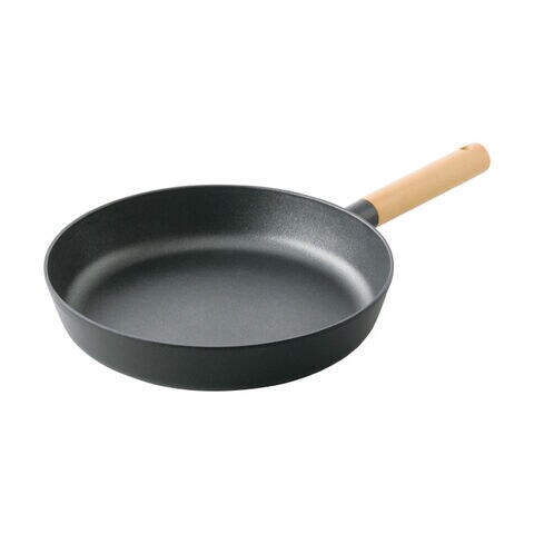熱伝導率が高いアルミ鋳造に、耐食性に優れたチタンと強度に優れたダイヤモンドを配合したWコーティングを施したフライパン。