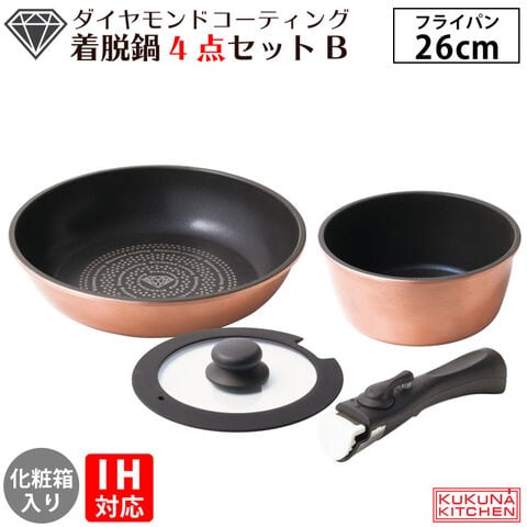 ダイヤモンドコート 着脱鍋4点セット B IH対応 KKN-DC4TNB-NW ククナキッチン アピデ【取っ手が取れる 鍋 フライパン セット】