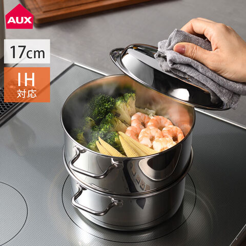 オークス コンパクトスチームポット17cm ステンレス IH対応 AUT1401【両手鍋 スチーマー 蒸し器 ミニ 日本製】