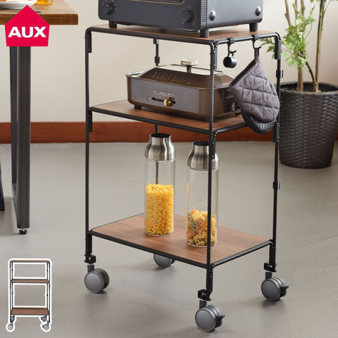 BOW テーブルワゴン BWS8202 オークス AUX【キッチンワゴン サイドテーブル キッチンラック 家電 オーブントースター 小物 収納 ラック キャスター付き フック付き キッチン収納】