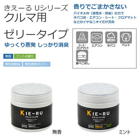 きえーる クルマ用 ゼリータイプ 140g 無香・ミント Uシリーズ KC-U140 環境大善【本体 消臭剤 バイオ酵素消臭液 車用 車内 エアコン】 ミント