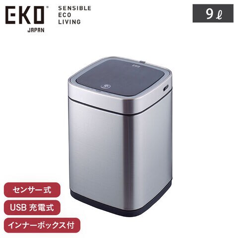 EKO エコスマート X 充電式センサービン 9L イーケーオー シルバー EK9252RGMT-9L【ゴミ箱 自動開閉 センサー 電動 USB充電 ダストボックス ふた付き ステンレス センサーゴミ箱 キッチン 洗面所 寝室】 シルバー