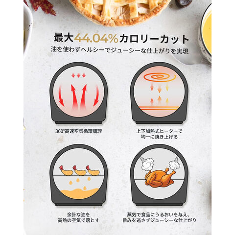 ノンフライヤー、トースター、オーブン、発酵、解凍、フードドライヤーの1台6役という充実した調理法を搭載