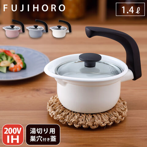 えーなポット 1.4L IH対応 ホーロー 片手鍋 ガラス蓋 富士ホーロー EP-1.4L【琺瑯 ミルクパン 蓋付き 湯切り穴付き ほうろう ホーロー鍋 水切り 鍋 ケトル型】 アッシュピンク