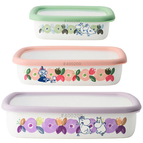 ムーミン フラワーガーデン ホーロー容器 浅型角容器 3個セット SML 1.6L 富士ホーロー【琺瑯 ほうろう 保存容器 セット 調理器具 直火 オーブン調理 キャラクター グッズ】