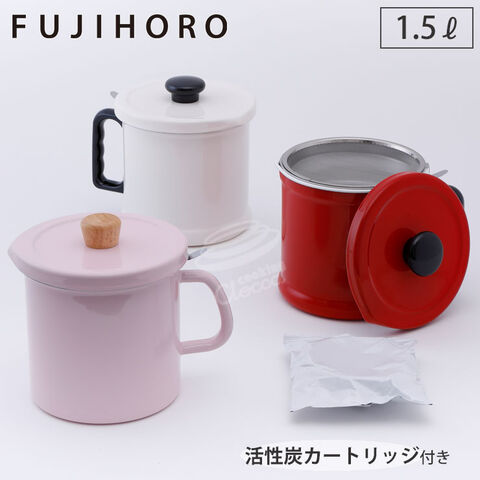 富士ホーロー オイルポット 1.5L ホーロー 活性炭カートリッジ【油ポット 琺瑯 活性炭フィルター カートリッジ ろ過 油返し 油こし器 ほうろう キッチン用品】 ピンク