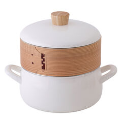 | 材質 | 本体,蓋:ほうろう用鋼板(底の厚さ 1.0mm)、ステンレスリング巻き 蓋つまみ:天然木 せいろ:天然木(竹) メッシュシート:シリコーンゴム |