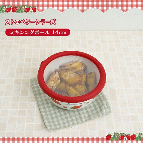 富士ホーロー ストロベリーシリーズ ミキシングボール 14cm STB-14MB【ホーロー容器 食材 調味料 保存 琺瑯容器 保存容器】