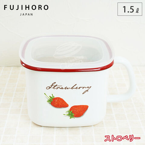富士ホーロー ストロベリーシリーズ 角型ストックポット STB-KP【ホーロー容器 みそ容器 ホーロー みそポット 琺瑯容器 保存容器 密閉 ストッカー 持ち手 キッチン用品 便利】