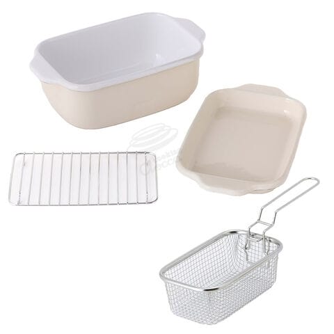 富士ホーロー 角型天ぷら鍋 角型揚げざる セット IH対応 温度計付き 揚げ網 バット付き TP-20K.W .LG.VA【天ぷら鍋 ホーロー 角型フライヤーバスケット 揚げザル ミニ 角 揚げ鍋 四角い 琺瑯 ほうろう】バニラ(温度計なし) 角型揚げざる