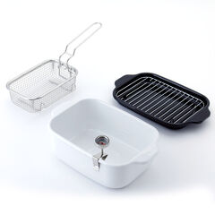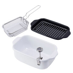 揚げ物調理に便利なバット&揚げ網が付属しています。付属品は本体と重ねてコンパクトに収納できます。