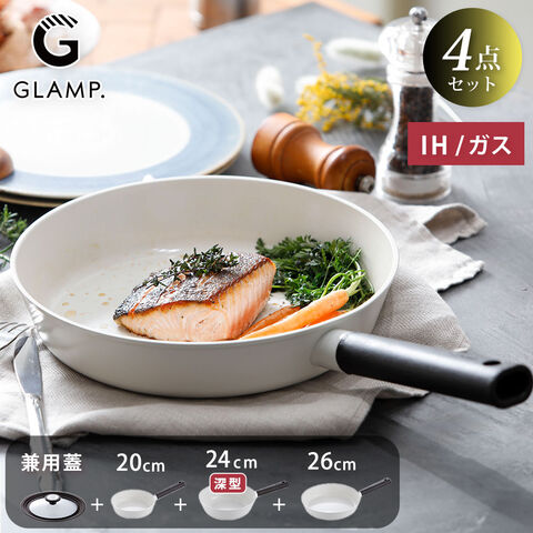 セラミックフライパン トライミー 4点セット 20cm 深型24cm 26cm 兼用蓋 ガス火 IH対応 グランプ GLAMP. PFOAフリー【フライパン セット セラミックコーティング 軽量 PFOA PFASフリー アルミ フッ素不使用】 ホワイト