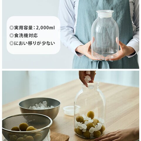 ガラス本体とフタは、酸やアルコールに強い耐熱ガラス製なので、安心して保存食づくりができます。