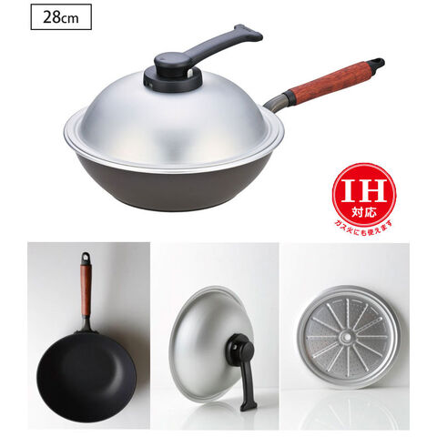 ウーウェンパン + 28cm WPL28IH IH用 スチームトレー スチームコントローラー付の蓋 北陸アルミニウム【ホクア フライパン テフロン プラチナプラス】
