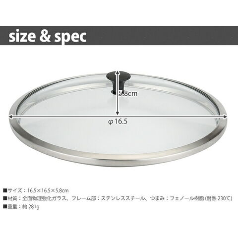| 材質 | 全面物理強化ガラス、フレーム部:ステンレススチール、つまみ:フェノール樹脂 (耐熱 230℃) |