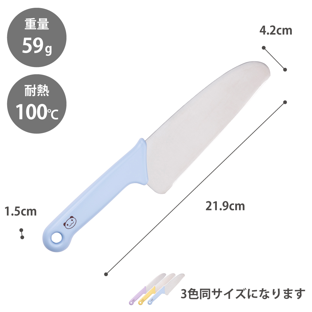 | バリエーション | 子ども包丁(初級用)丸刃 コアラ ラベンダー/FG5200 子ども包丁(中級用)ギザ刃 ウサギ イエロー/FG5201 子ども包丁(上級用)本格刃付 パンダ ブルー/FG5202 |