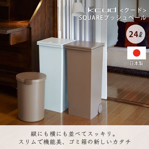 クード スクエア プッシュペール 24L キャスター付き アイムディー ImD kcud SQUARE KUDSQ 岩谷マテリアル【ゴミ箱 分別 プッシュ ダストボックス スリム 30リットルのゴミ袋対応 ふた付き 日本製】 Aベージュ