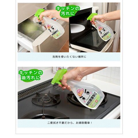 | 商品説明 | ●界面活性剤や添加剤不使用で二度拭き不要。食器にかかっても安心安全 ●アルカリ電解水の力で汚れを強力に落とし、さらに除菌・消臭! ●水拭きでは取れない汚れや油汚れも、アルカリイオンが包み込んで浮かせて落とす ●ベビー用品やペット用品、リビング・トイレなど通常のお掃除でも大活躍のマルチクリーナー |
