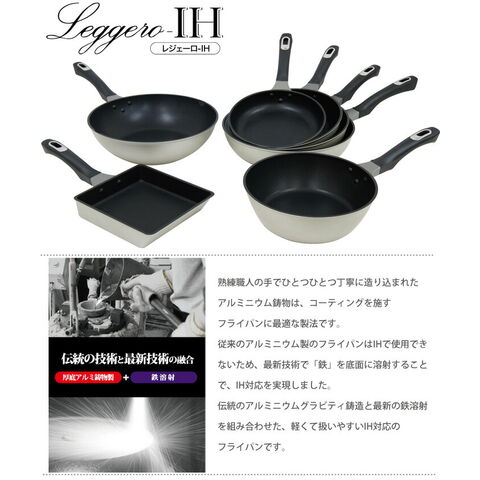 | 商品説明 | ウルシヤマ金属工業のレジェーロ-IHシリーズ。伝統のアルミニウムグラビティ鋳造と最新の鉄溶射を組み合わせた、軽くて扱いやすいIH対応フライパンシリーズです。 従来のアルミニウム製のフライパンはIHで使用できませんでしたが、底面に鉄を溶射することによって、IHでお使いいただけます。 本体に気泡が残りにくいグラビティ鋳造は、コーティングを施すフライパンに最適な製造方法です。 熱伝導が良く、厚底設計なので、料理がムラなくおいしく出来上がります。 コーティングはデュポン社最高級グレードのテフロンプラチナプラスが施されており、耐久性に優れているため、金属ヘラをご使用いただけます。こびりつきにくいため少ない油で調理ができ、お手入れも簡単。 |