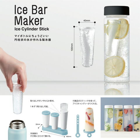 | 商品説明 | マイボトルにちょうどいい円柱状の氷が作れる製氷器 付属のスティックを使ってアイスキャンディーが作れます。 取り出しやすいやわらか素材を採用し、一本ずつ取り出し可能。 コンパクトなので冷凍庫のすき間に立たせて置けます。 |