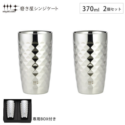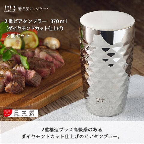 磨き屋シンジケート 2重ビアタンブラー 370ml ダイヤモンドカット 2個 セット ヨシカワ YJ1194【保温 保冷 二重構造 ビールタンブラー ペア ビアグラス ステンレス タンブラー ビール ギフト 母の日 父の日 日本製】