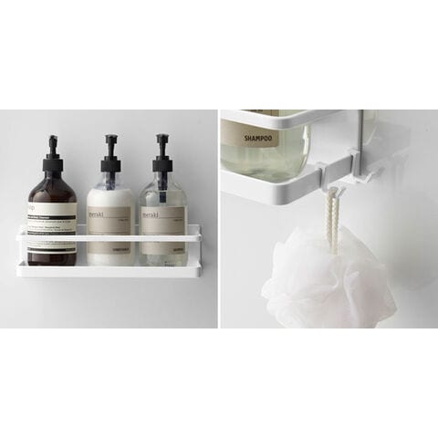 | 商品説明 | マグネットが付く浴室壁面に簡単取り付けのワイドラック。 ディスペンサーボトルの追加棚として便利。 水切れの良いミゾ付きトレー構造なので、石鹸、歯ブラシ、タンブラーなどの収納にもおすすめです。 マグネットなので取り付け位置が簡単に調節可能、ブラシなどを掛けておくのに便利なフック2個付き。 壁面を傷付けにくく、錆びないラバータイプのマグネットを使用しています。 |