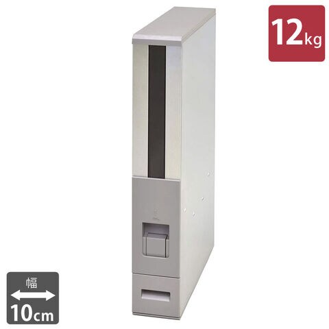 幅10cmでキッチンの隙間などに収納できるステンレス製米びつです。
