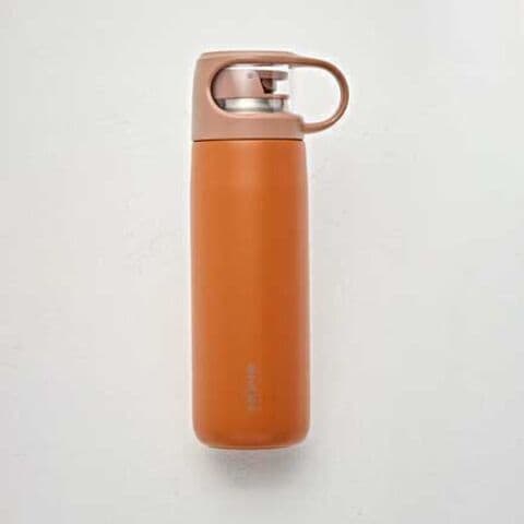 キューブ マグボトル コップ付き 380ml 真空断熱 MOMO concept【コップ付き水筒 マグボトル 魔法瓶 保温 保冷 真空二重構造 ステンレスボトル 大人 ランチグッズ モモコンセプト 百麦】 キャラメルブラウン