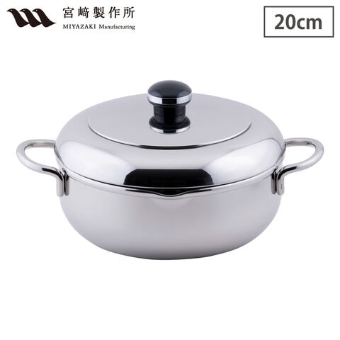 オブジェ ザ・テンプラ 天ぷら鍋 両手鍋 20cm 2.2L ガス火 IH対応 蓋付き 油よけフード ステンレス 宮崎製作所 Objet OJ-44【てんぷら鍋 揚げ鍋 丸型 フタ 揚げ物調理 鍋 IH 全面鉄芯三層鋼 日本製】