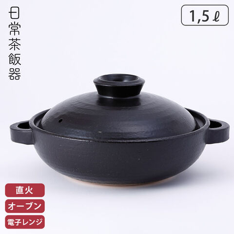 日常茶飯器 黒 7.5号平鍋 持ち手あり 萬古焼 0100-0010【土鍋 浅型 卓上鍋 陶器 和食器 大鉢 電子レンジ対応 万古焼 日本製】