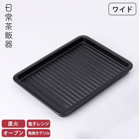 日常茶飯器 グリルプレート ワイド 黒 萬古焼 0100-0029【陶板 魚焼きグリル プレート グリルパン 陶板焼き 卓上 陶器 皿 直火 オーブン対応 電子レンジ対応 万古焼 日本製】