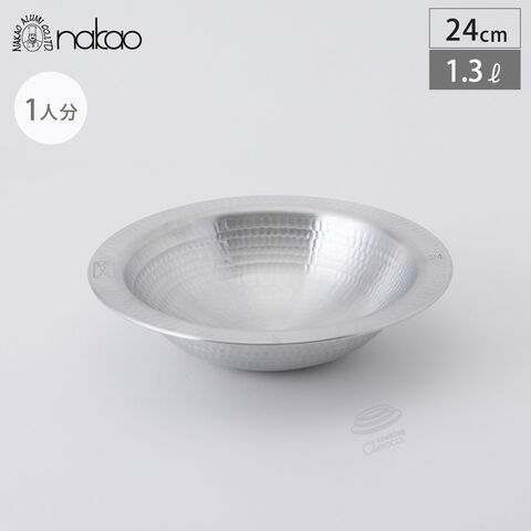 アルミ 打ち出し うどんすき鍋 24cm 1.3L 中尾アルミ製作所 一人前 ガス火専用 N-26【卓上鍋 1人用 浅型 中尾アルミ 打出 鍋 業務用 取っ手なし 直火 軽量 日本製】