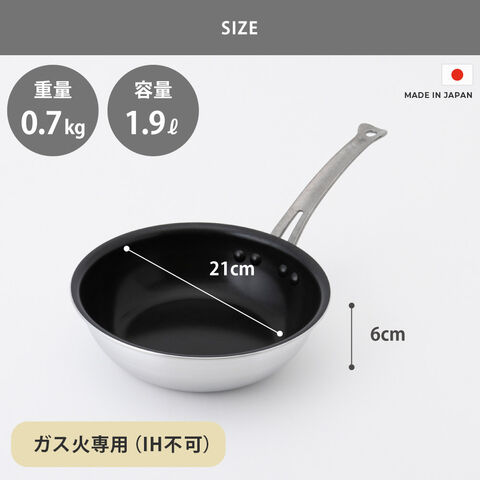 シルクフライパン 深型 21cm ガス火専用 中尾アルミ製作所 N-164【中尾アルミ 深型フライパン 業務用 アルミ 鍋 片手鍋 ガス火 日本製】