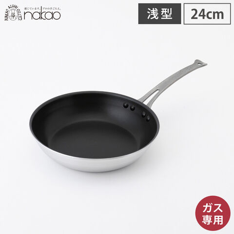 シルクフライパン 浅型 24cm ガス火専用 中尾アルミ製作所 N-164【中尾アルミ 浅型フライパン 業務用 アルミ 鍋 片手鍋 ガス火 日本製】