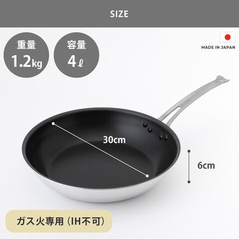 | 備考 | ○ 本商品のハンドルは一般的なお料理の使用では熱くなりにくい、ステンレス製ハンドルとなっております。(使用状況、加熱時間により熱くなる場合もありますのでご注意ください。) ○ 業務用商品のため、箱に入っておりません。製造工程上で生じた細かなキズが見られる場合がございますが、良品として販売しております。 ○ 金属ヘラや鋭利な調理器具は使用不可。耐熱樹脂製や木製の調理器具をお使いください。 ○ 空焚き不可。予熱する場合は中火以下で10秒程度。煙が出るまで予熱するとコーティングが傷む原因となります。 |