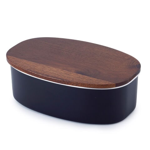 ステンレスランチボックス オーバル 600ml 木蓋 NONOJI ののじ【弁当箱 ランチボックス ステンレス 小判型 1段 大人 食洗機対応 電子レンジ BPAフリー】ブラック 単品