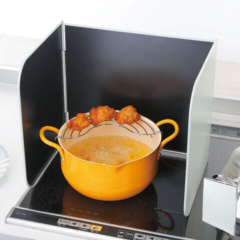油はねが気になる調理のときにだけ、サッと取り出して使えるコンロガード。