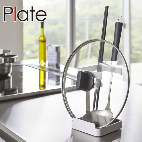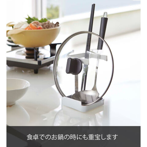 山崎実業 プレート お玉&鍋蓋スタンド 2800 ホワイト Plate【お玉立て 鍋ふたスタンド 菜箸スタンド キッチン 収納 トレー付き 水受け 取り外し 卓上 鍋 まな板 タブレットスタンド】