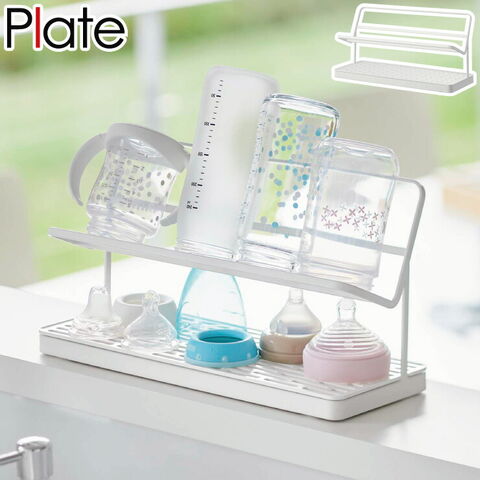 山崎実業 プレート 哺乳瓶&マグボトル水切りラック 5857 plate【ボトルラック 哺乳瓶 ボトル 水筒 乾燥 ラック 水切りトレー 水切りラック キッチン 収納 シンク周り プレート】