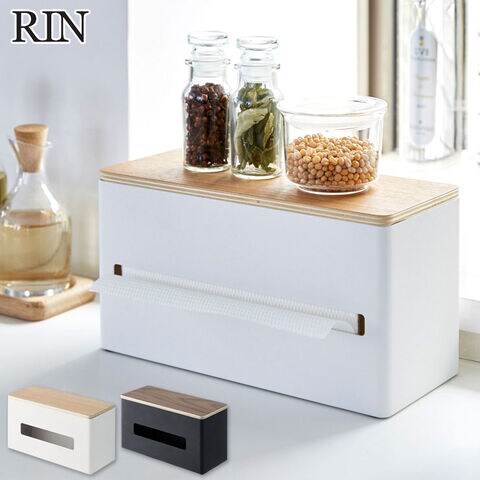 山崎実業 リン 両面ティッシュケース ブラウン 4765 ナチュラル 4766 yamazaki RIN【ティッシュケース 木製蓋 ボックスティッシュケース ペーパータオルケース キッチン 台所 リビング 収納】 ブラウン